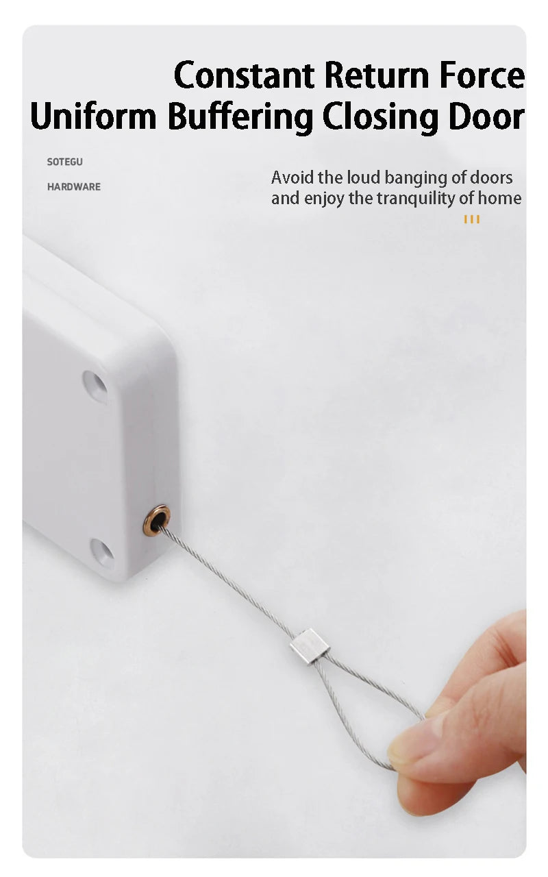 Punch-Free Automatic Sensor Door Closer Adjustable Surface Door Stop Bracket Pull Cord Door Closer for Residential First Generation